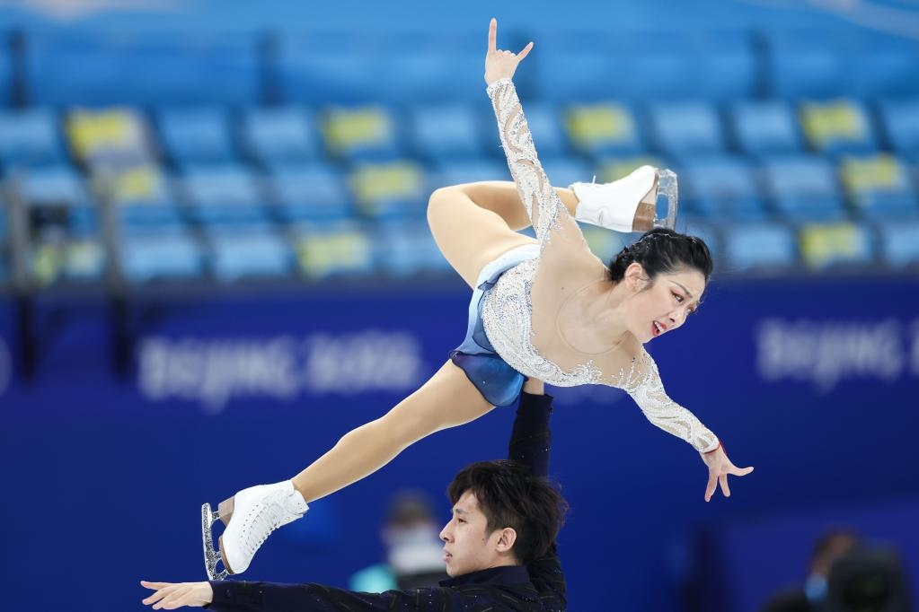 2月19日,中國選手隋文靜(上)/韓聰在比賽中。新華社記者蘭紅光攝