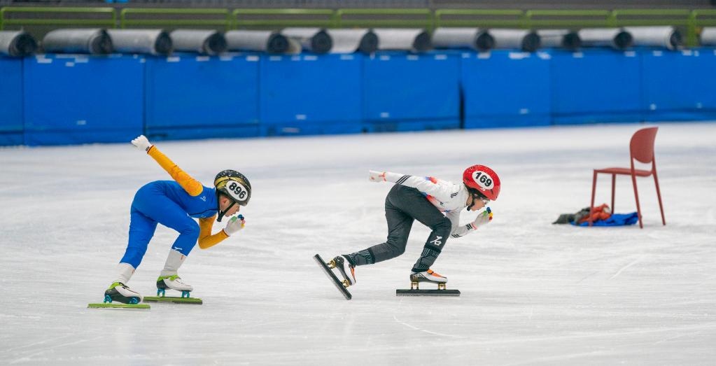 2月11日,在北京市昌平區(qū)世紀(jì)星國(guó)際冰雪體育中心,參加集訓(xùn)的小隊(duì)員們進(jìn)行短道速滑訓(xùn)練。新華社記者才揚(yáng)攝