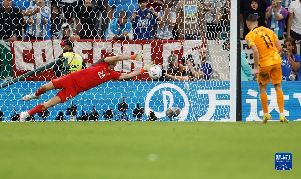 12月9日,阿根廷隊守門員馬丁內(nèi)斯在點球大戰(zhàn)中。