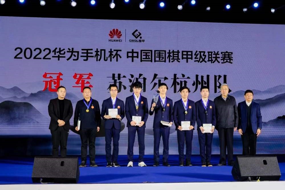 蘇泊爾杭州隊在2022華為手機(jī)杯中國圍棋甲級聯(lián)賽頒獎儀式上。
