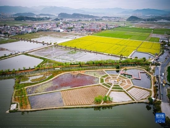 這是3月29日拍攝的諸暨市楓橋鎮(zhèn)杜黃新村農(nóng)耕體驗(yàn)研學(xué)基地(無人機(jī)照片)。近年來,當(dāng)?shù)赝瞥鍪喾N農(nóng)事特色體驗(yàn)項(xiàng)目,著力打造“田上杜黃”這一文旅品牌。