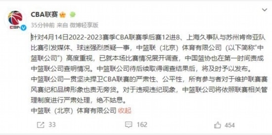 隨后,CBA官方也作出回應。