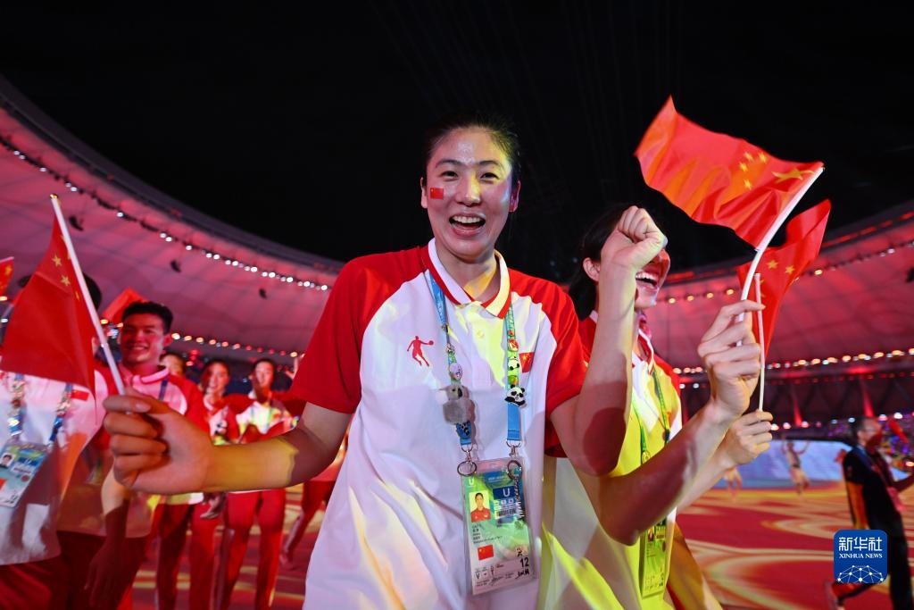 7月28日,中國(guó)大學(xué)生體育代表團(tuán)在開(kāi)幕式上入場(chǎng)。
