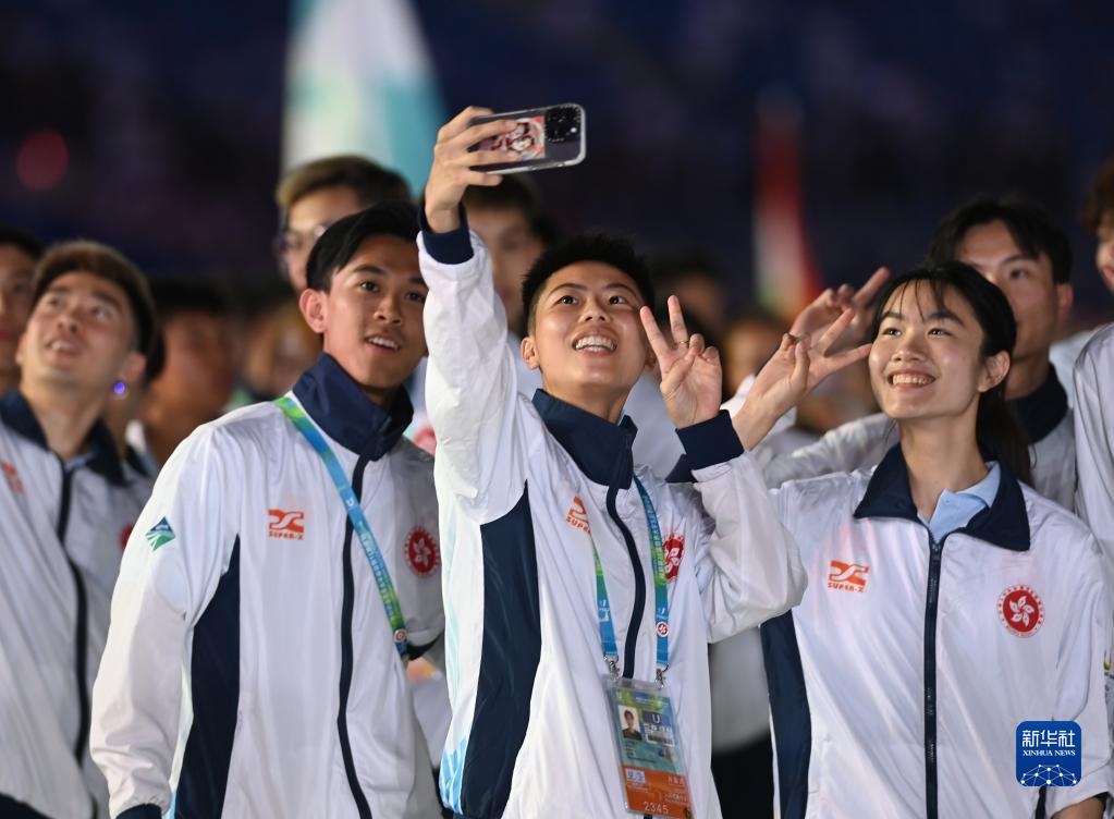 7月28日,中國(guó)香港大學(xué)生體育代表團(tuán)在開(kāi)幕式上入場(chǎng)。