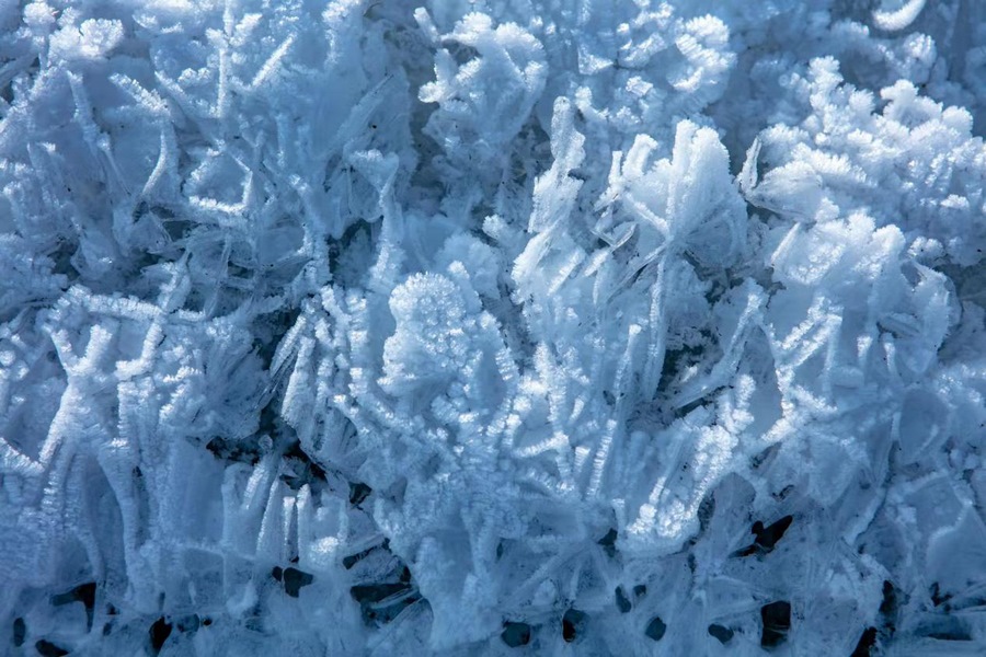 郎立興在爬冰臥雪和踏遍雪原山林與冰雪的“耳鬢廝磨”和艱辛跋涉中,升騰了對(duì)于冰雪的情感和認(rèn)知,破譯了冰雪的情懷和語言,對(duì)于冰雪有著獨(dú)特的發(fā)現(xiàn)和關(guān)乎哲理和生命的深層理解。在他的鏡頭下,那些冰雪展現(xiàn)了大自然的鬼斧神工和神奇造化,具有生命力和藝術(shù)感染力,蘊(yùn)藏著豐富的自然信息和生命信息,傳達(dá)和昭示著深刻的寓意。