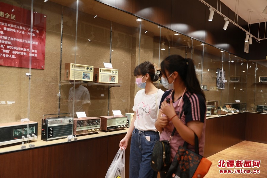 8月17日,游客在內(nèi)蒙古包頭市固陽縣“固陽稒事”美食特產(chǎn)文創(chuàng)街的收音機收藏館參觀。