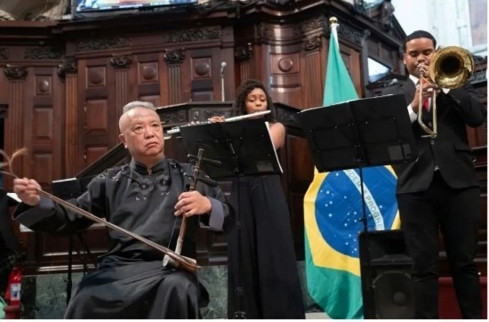三個月的時間很快過去,童生垣的“洋徒弟”們已經(jīng)能夠熟練演奏中國民樂經(jīng)典曲目,他們也積極嘗試將民樂音色與管弦樂器和本土鼓點(diǎn)節(jié)奏相結(jié)合,奏響中巴音樂和鳴鏗鏘、文明交流互鑒的新樂章。據(jù)童老師介紹,巴西青年很喜歡京劇的鑼鼓經(jīng),二胡的含蓄靜美遇上巴西打擊樂的歡快跳躍,可謂各美其美,美美與共??婆量ò图{要塞管弦樂團(tuán)成員主要來自里約低收入家庭,得益于中海油巴西公司在巴《文化激勵法》框架下的資助而有機(jī)會接受藝術(shù)教育并改變?nèi)松壽E,乘著音樂的翅膀飛向更廣闊的天地。