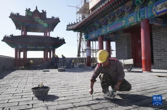 11月1日,工人在河北省張家口市萬全右衛(wèi)城長城國家文化公園文旅融合區(qū)項(xiàng)目建設(shè)工地施工。