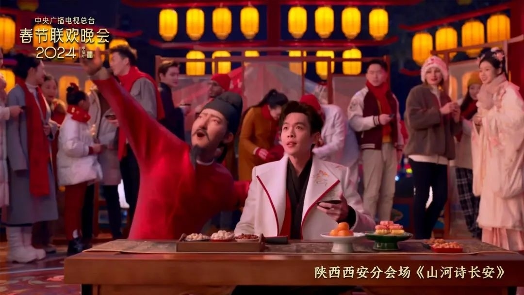 龍年春晚,西安分會(huì)場拿出年度熱門電影《長安三萬里》,將詩意浪漫與熱血沸騰有機(jī)結(jié)合。一大批既具有中國傳統(tǒng)審美意蘊(yùn)又盡顯時(shí)代風(fēng)采的優(yōu)質(zhì)原創(chuàng)節(jié)目在傳統(tǒng)服飾、健康養(yǎng)生等新的文化賽道引領(lǐng)風(fēng)潮。而三大英雄史詩、民歌串燒等節(jié)目則以熱烈質(zhì)樸的表演形式,展現(xiàn)中華民族各民族文化融為一體、盡情歡歌,盡顯中華優(yōu)秀傳統(tǒng)文化在新時(shí)代煥發(fā)出蓬勃的生命力。