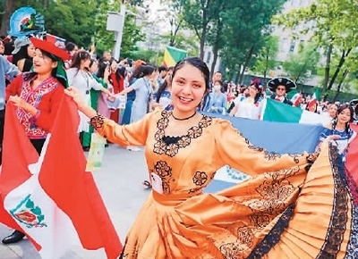 中外學生身著民族服飾載歌載舞,活動參加者現(xiàn)場體驗絲網(wǎng)印刷、水拓工藝……日前,北京語言大學第十九屆世界文化節(jié)游園會舉辦。來自103個國家和地區(qū)的青年及社會各界人士同聚北語,感受文化交融的魅力。