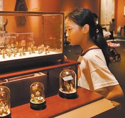 游客在中國(guó)大運(yùn)河非物質(zhì)文化遺產(chǎn)展示館內(nèi)參觀。圖為新華社記者牟宇攝