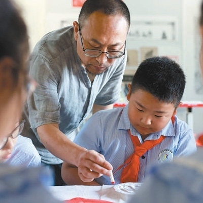 學(xué)生跟隨非遺傳承人學(xué)習(xí)體驗(yàn)拓印技藝。楊 晨攝(人民視覺)