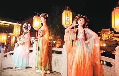 洛邑古城相關(guān)負(fù)責(zé)人介紹,景區(qū)致力于漢服文化的推廣與傳承,創(chuàng)意打造穿越新場景,豐富文旅新業(yè)態(tài)。景區(qū)有24個(gè)朝代的漢服形制、56個(gè)民族的服飾款式,游客可找到各自喜歡的款式,扮演喜愛的角色。燈獅畫橋、香羅幔天、文峰暮鼓等30余處場景,讓游客盡享“穿越自由”。洛邑古城還策劃了一系列創(chuàng)新主題活動,讓身著漢服的游客與“李白”“武則天”談古論今,與“嫦娥”“牡丹花神”近距離互動。