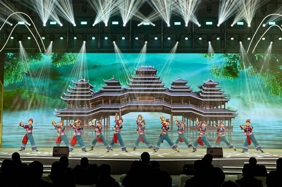 群舞《薅呀薅呀薅》、土家族打溜子《雄雞爭(zhēng)艷》等節(jié)目,以獨(dú)特的民族舞蹈和打擊樂(lè),展現(xiàn)了別具一格的魅力;苗族民歌《嬌阿依》、地花鼓《打扮小郎一支花》等節(jié)目,掀起了最炫民族風(fēng);南劇《唐崖土司夫人》片段等節(jié)目,體現(xiàn)了武陵山區(qū)的深厚藝術(shù)底蘊(yùn)。來(lái)自宜昌、恩施、湘西和重慶等地的演員們,更是聯(lián)手獻(xiàn)上了《日子越過(guò)越敞亮》,展現(xiàn)出武陵山區(qū)各民族同根同源、文化交融的深厚情感,以及勾勒出這片土地上繁榮興旺、和諧共生的美好畫卷。