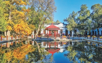 雙清別墅內(nèi)有一座六角紅亭,當(dāng)年毛澤東在工作之余,會到亭子里坐坐。1949年4月的一天,毛澤東正在六角紅亭閱讀刊載“南京解放”消息的報(bào)紙。在場的攝影師徐肖冰打開照相機(jī),按下快門,一張具有歷史意義的照片誕生了。如今,這座亭子里的藤桌、瓷鼓,都根據(jù)衛(wèi)士長李銀橋的回憶進(jìn)行了復(fù)原。