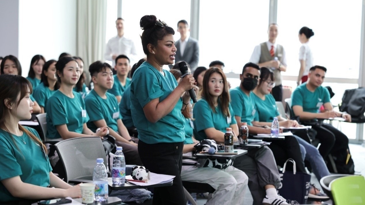 移步至沉浸式展演區(qū),情景演繹與互動(dòng)交流交織,不同時(shí)代青年在勞動(dòng)崗位上的奮斗場景躍然眼前,師生們不再是旁觀者,而是歷史的參與者,真切體悟到奮斗者的熱血與執(zhí)著。