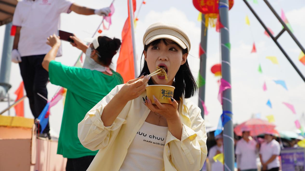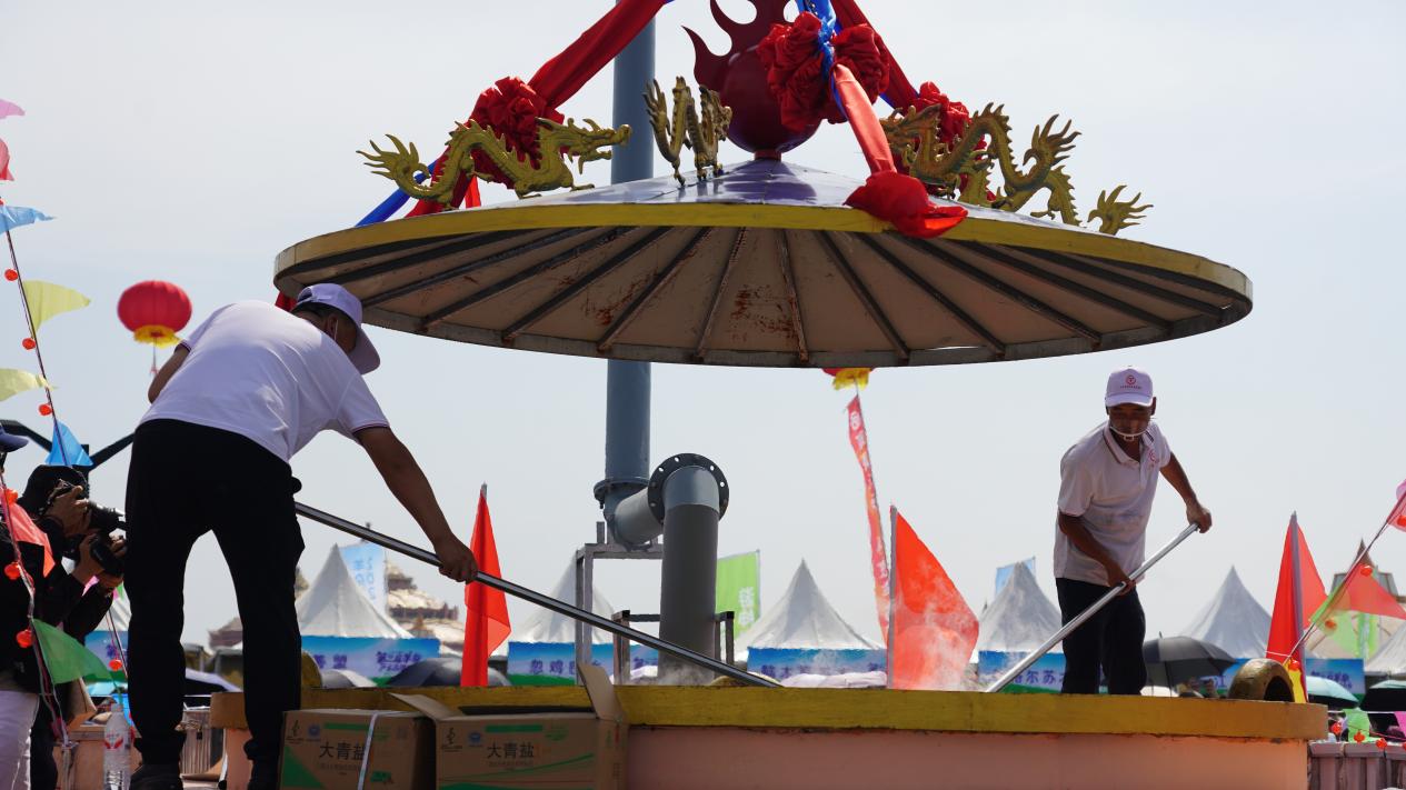 活動(dòng)現(xiàn)場(chǎng),巨型銅鍋穩(wěn)居C位,隨著鍋蓋打開,熱氣裹挾著濃郁香味沖天而起,紅亮的湯汁中翻滾著羊腸、羊肚,引得圍觀群眾頻頻點(diǎn)贊。