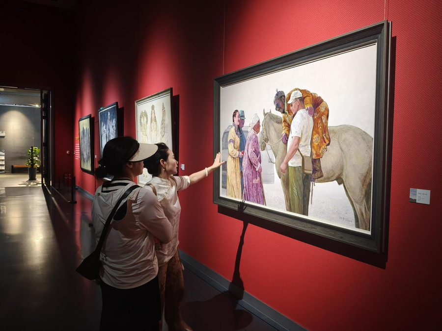 “吾心歸 ——內(nèi)蒙古美術(shù)館館藏妥木斯師生油畫作品展”(8.8-9.7,3/4號(hào)展廳):該展覽像一部立體的草原藝術(shù)編年史,妥木斯筆下的蒙古馬依然昂揚(yáng),而弟子們的作品早已玩出了新花樣:超現(xiàn)實(shí)手法讓羊群飄在星空下,極簡(jiǎn)線條勾勒出蒙古包的幾何之美。在“當(dāng)代回聲”篇章里,能清晰看見草原意象如何在畫布上完成從傳統(tǒng)到現(xiàn)代的蛻變,就像馬頭琴也能彈出電子旋律,根沒(méi)變,韻更活了。