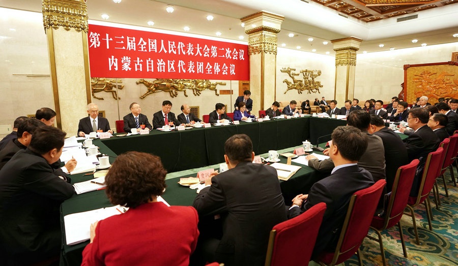 3月6日下午,十三屆全國人大二次會議內(nèi)蒙古代表團在人民大會堂內(nèi)蒙古廳舉行全團會議,繼續(xù)審議政府工作報告。本次全團會議向境內(nèi)外媒體開放。