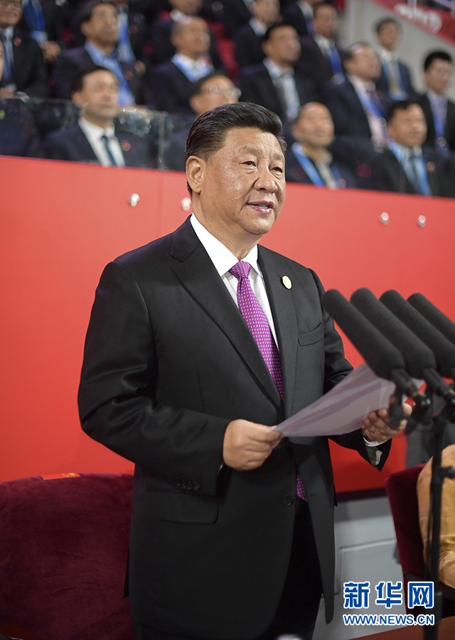 5月15日晚,國(guó)家主席習(xí)近平和夫人彭麗媛在北京國(guó)家體育場(chǎng)同出席亞洲文明對(duì)話大會(huì)的外方領(lǐng)導(dǎo)人夫婦共同出席亞洲文化嘉年華活動(dòng)。這是習(xí)近平發(fā)表致辭。 新華社記者 李學(xué)仁 攝