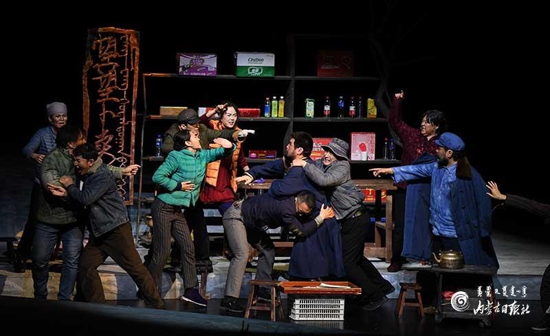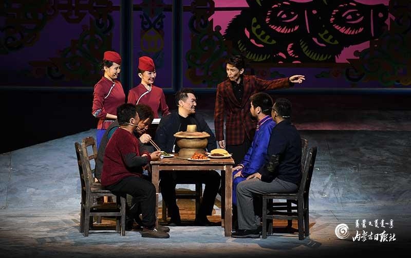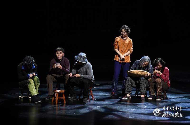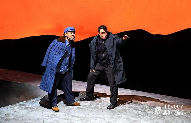 參演《紅手印》的都是來自草原的蒙古族演員,不僅要完成漢語的臺詞,還要熟練自然地講出大量內(nèi)蒙古西部方言對白?!皩τ谠拕⊙輪T來說,臺詞功底太重要了。為了練好方言,我們好多演員早起練功的時候嘴里都念念有詞地說著西部方言?!毖輪T烏仁朝魯門說。他扮演的新扎木村主任令人印象深刻,一個一心想帶百姓致富卻屢遭失敗的老黨員形象?!爸氨硌輾v史題材的話劇大多是從影像和資料了解人物,這部戲的題材貼近觀眾們的現(xiàn)實生活,必須接地氣才能得到認可。我通過寫人物小傳的方式,深挖村主任的人物個性和從失望到燃起希望的內(nèi)心世界,讓觀眾能夠認可這個形象。”烏仁朝魯門說。