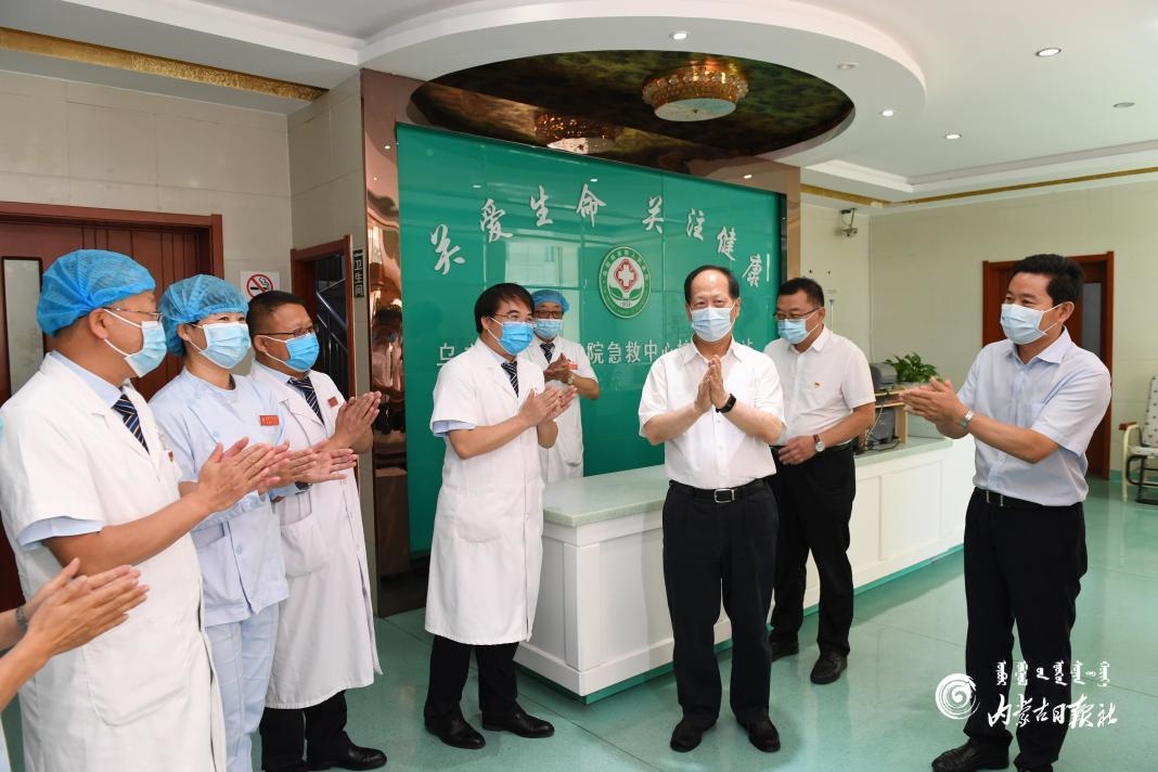 8月19日是第三屆“中國(guó)醫(yī)師節(jié)”,自治區(qū)黨委書(shū)記、人大常委會(huì)主任石泰峰來(lái)到巴彥淖爾市烏拉特前旗人民醫(yī)院,向醫(yī)護(hù)人員致以節(jié)日祝賀和誠(chéng)摯問(wèn)候。內(nèi)蒙古日?qǐng)?bào)社融媒體記者 袁永紅 攝