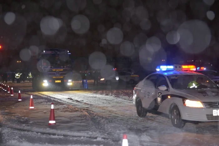 早上4時30分,經(jīng)公安民警、防疫工作人員認(rèn)真核對司乘人員48小時內(nèi)核酸檢測陰性證明、車輛信息及編號等準(zhǔn)備工作后,229輛大貨車按照20輛一組要求,在警車的護送下順利駛出二連浩特市。