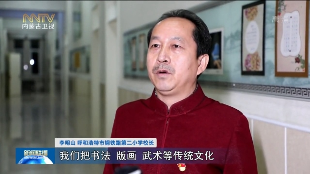 李明山 呼和浩特市鋼鐵路第二小學校長:我們把書法、版畫、武術(shù)等傳統(tǒng)文化融入到孩子們的課堂中,就是為了,讓他們從傳統(tǒng)文化中,感受我們民族的根,民族的魂,