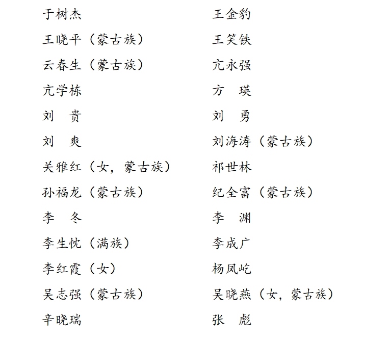 中國(guó)共產(chǎn)黨內(nèi)蒙古自治區(qū)第十一屆紀(jì)律檢查委員會(huì)委員名單(45人)