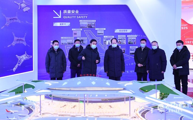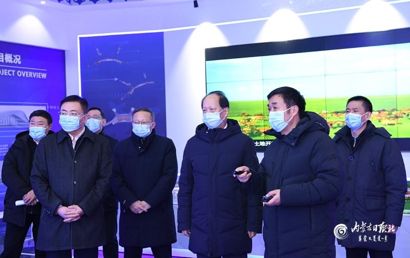 1月18日下午,自治區(qū)黨委書記、人大常委會(huì)主任石泰峰在呼和浩特新機(jī)場智慧展廳,聽取新機(jī)場主體建設(shè)情況介紹。內(nèi)蒙古日報(bào)社融媒體記者 袁永紅 攝
