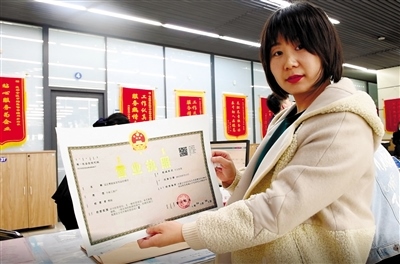 包頭市昆都侖區(qū)實現(xiàn)“一枚印章管審批”。商戶在展示剛更換的營業(yè)執(zhí)照。本報記者孟和朝魯攝