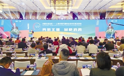 自治區(qū)商務(wù)廳在上海舉辦“內(nèi)蒙古自治區(qū)—上海市現(xiàn)代服務(wù)業(yè)合作交流洽談會”。內(nèi)蒙古日報社融媒體記者高慧攝