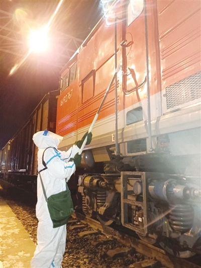 田潤(rùn)澤告訴記者,“通過(guò)‘無(wú)接觸’查驗(yàn)、磁條封控車門,避免了跨境列車司機(jī)與邊檢、海關(guān)工作人員的直接接觸,最大限度降低交叉感染的風(fēng)險(xiǎn),確保司機(jī)在國(guó)內(nèi)停留的數(shù)小時(shí)內(nèi)不下車、不與外界接觸。”