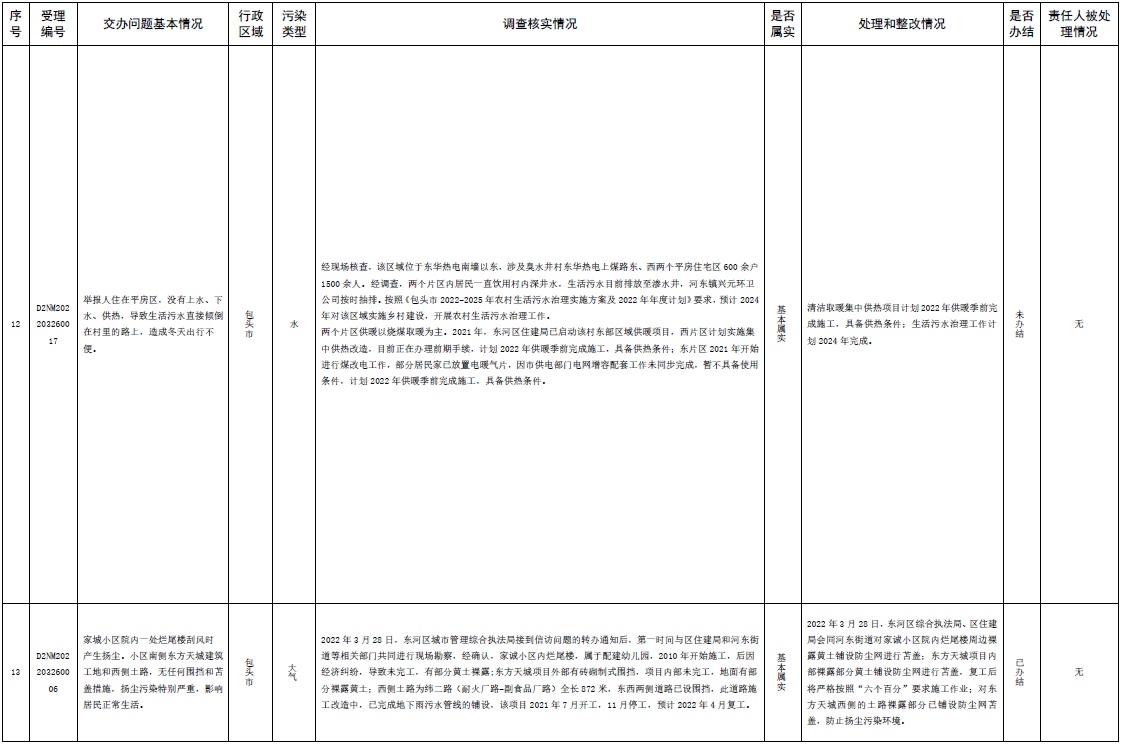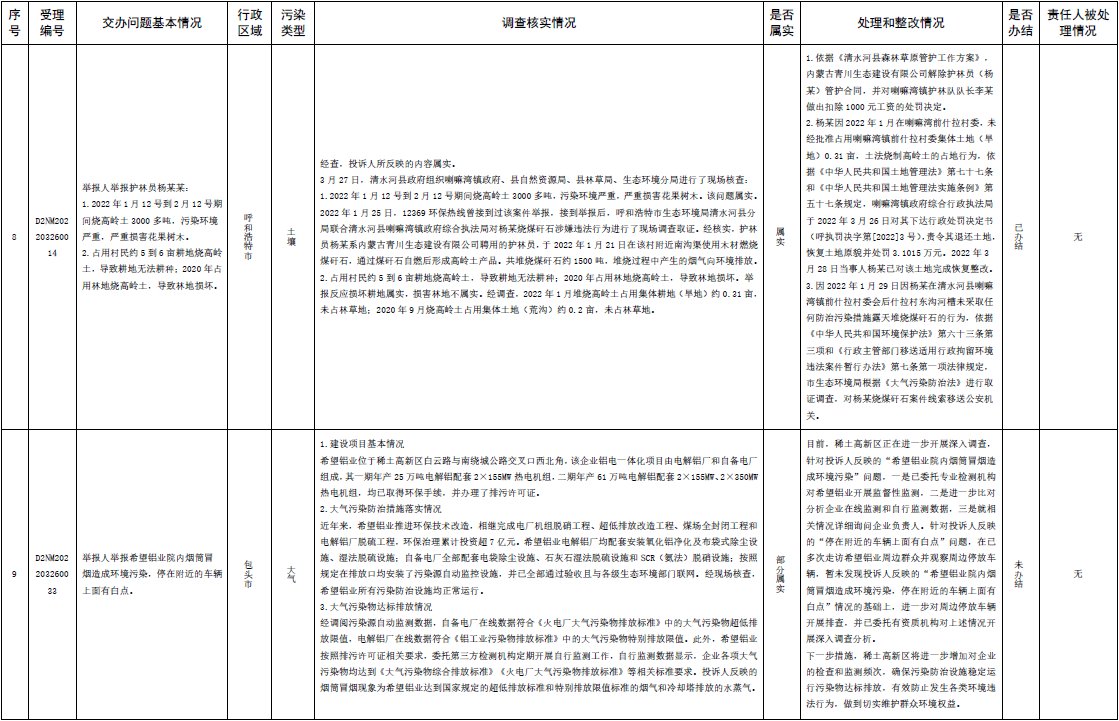 原標(biāo)題:中央第三生態(tài)環(huán)境保護(hù)督察組交辦內(nèi)蒙古自治區(qū)第二批42件群眾信訪舉報(bào)件辦理情況