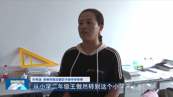 赤峰市敖漢旗貝子府中學七年二班老師 從小學二年級王傲然轉(zhuǎn)到這個小學來,他(孫偲藐)就一直照顧他(王傲然),(小學階段)一直照顧到六年級,上樓下樓的他(孫偲藐)就背著他(王傲然)、有時攙著他、扶著他。