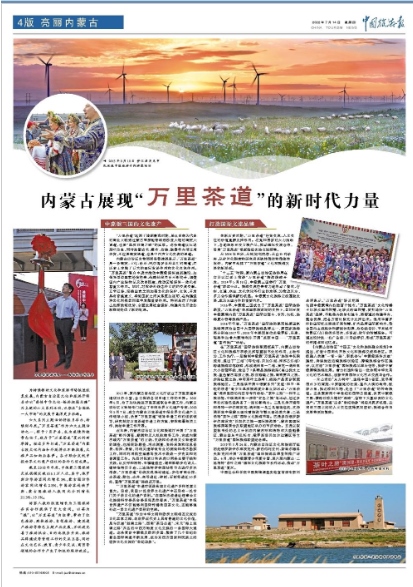 7月14日,《中國(guó)旅游報(bào)》4版刊發(fā)《內(nèi)蒙古展現(xiàn)“萬里茶道”的新時(shí)代力量》,全文如下: