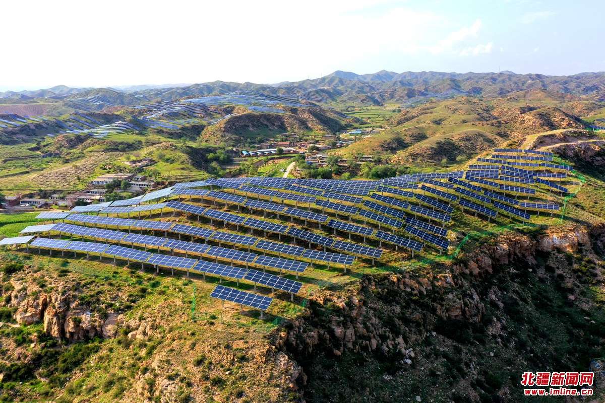 立于山間的太陽(yáng)能光伏電站