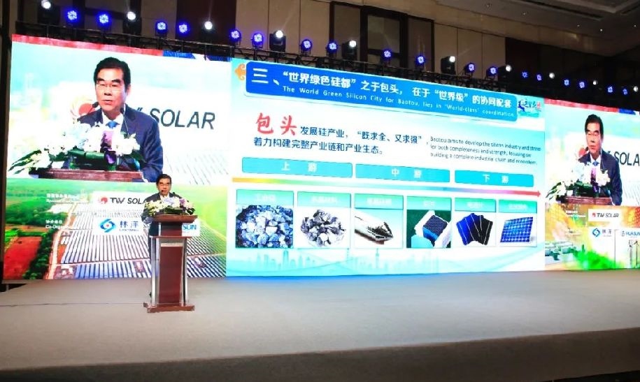 國際太陽能光伏與智慧能源大會是全球規(guī)模最大、最具影響力的專業(yè)化國際化光伏盛會,對于世界能源變革、全球生態(tài)環(huán)境改善具有重要引領(lǐng)作用。丁繡峰代表市委、市政府向大會的召開表示熱烈的祝賀,向所有關(guān)心支持包頭發(fā)展的企業(yè)家、專家學(xué)者和各界人士表示衷心的感謝。他說,全球綠色能源理事會為包頭市頒授“世界綠色硅都”稱號,我們深感榮幸、倍感振奮?!笆澜缇G色硅都”之于包頭,在于“世界級”的產(chǎn)業(yè)規(guī)模,2022年包頭成為全國首個(gè)光伏產(chǎn)業(yè)產(chǎn)值超千億元的城市,預(yù)計(jì)今年底多晶硅、單晶硅產(chǎn)能將分別占到全國的40%,2025年將分別占到全國的半壁江山、占到全球的45%,我們將繼續(xù)擴(kuò)大光伏硅優(yōu)勢,建設(shè)全球最大的晶硅材料生產(chǎn)基地,打造萬億級光伏產(chǎn)業(yè)集群,建設(shè)千億級半導(dǎo)體產(chǎn)業(yè)集群和有機(jī)硅產(chǎn)業(yè)集群?!笆澜缇G色硅都”之于包頭,在于“世界級”的綠電支撐,包頭風(fēng)光資源豐富,可為硅產(chǎn)業(yè)發(fā)展提供“綠色電、便宜電、可靠電”,到2025年全市光伏產(chǎn)業(yè)使用“綠電”比例將達(dá)到40%以上,為企業(yè)通過“碳足跡”認(rèn)證、進(jìn)軍歐盟等國際光伏市場拿到綠色通行證。“世界綠色硅都”之于包頭,在于“世界級”的協(xié)同配套,包頭發(fā)展硅產(chǎn)業(yè)從一開始就本著“既求全、又求強(qiáng)”的原則,目前已形成從工業(yè)硅到多晶硅、單晶硅,再到切片、電池片、組件的完整光伏產(chǎn)業(yè)鏈,我們將繼續(xù)抓好產(chǎn)業(yè)成龍配套,保證光伏產(chǎn)業(yè)鏈各環(huán)節(jié)都有頭部企業(yè)集聚,使包頭成為全國乃至全球光伏產(chǎn)業(yè)鏈最完整、配套率最高的城市?!笆澜缇G色硅都”之于包頭,在于“世界級”的技術(shù)研發(fā),云集包頭的硅產(chǎn)業(yè)頭部企業(yè)都擁有著引領(lǐng)行業(yè)前沿的技術(shù)優(yōu)勢,是包頭硅產(chǎn)業(yè)屹立全球行業(yè)前沿的硬支撐,我們將加速創(chuàng)新鏈與產(chǎn)業(yè)鏈融合發(fā)展,使包頭成為具有全球影響力的硅產(chǎn)業(yè)先進(jìn)技術(shù)研發(fā)中心、認(rèn)證中心、檢測中心、推廣中心。
