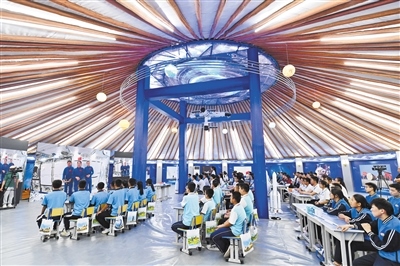 9月21日,120名中學(xué)生在阿拉善盟額濟(jì)納旗蒙古包地面課堂與空間站“同頻共振”,聆聽(tīng)來(lái)自太空的聲音。內(nèi)蒙古日?qǐng)?bào)社融媒體記者 王磊 攝