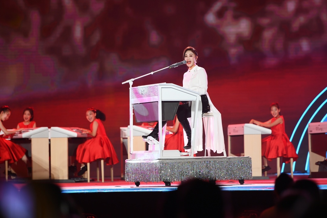 一臺(tái)可以腳踏的鋼琴是《玖月奇跡》給人最為深刻的印象,今天這架鋼琴來到了草原文化節(jié)的現(xiàn)場(chǎng),動(dòng)感的旋律,高亢的嗓音配合著極具節(jié)奏感的彈奏給人以深刻的印象,這樣的表演方式獨(dú)樹一幟,能到現(xiàn)場(chǎng)一睹風(fēng)采的觀眾都非常幸運(yùn)。