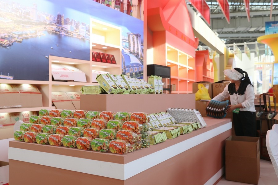 參展機(jī)構(gòu)工作人員正在布置展品