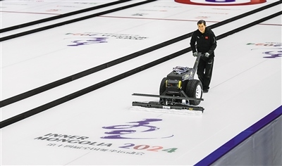 12月7日,走進(jìn)位于呼倫貝爾市海拉爾區(qū)的內(nèi)蒙古自治區(qū)冰上運(yùn)動訓(xùn)練中心冰球冰壺館,只見制冰師正在一遍又一遍地修整冰面,為即將到來的“十四冬”冰壺項目青年組比賽做準(zhǔn)備。