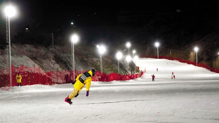 滑雪愛好者在赤峰市道谷南山滑雪場(chǎng)滑雪。李富 攝