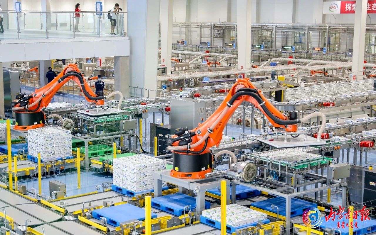 伊利現代健康谷液態(tài)奶全球智造標桿基地繁忙的生產線。 (資料圖)
