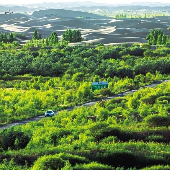 在與沙的博弈中,內(nèi)蒙古探索出許多行之有效的模式和路子,為全國乃至全球荒漠化防治提供了“中國方案”、貢獻了“中國智慧”。庫布其沙漠治理模式被巴黎氣候大會標(biāo)舉為“中國樣本”,樹立了生態(tài)治理的國際典范。如今,庫布其治沙模式、技術(shù)和成果已經(jīng)走向世界,為全球3600萬平方公里的荒漠化土地治理和無數(shù)受荒漠化威脅的人們貢獻著“方案”與“智慧”。阿拉善盟摸索出一套適合極度干旱地區(qū)飛播造林的技術(shù)模式,打破了年降水量200毫米以下地區(qū)屬于飛播造林“禁區(qū)”的“魔咒”,為其他同等氣候條件下的沙漠治理提供了示范。向沙漠要效益,沙漠變資源,沙海變“藍?!保瑑?nèi)蒙古保護生態(tài)與改善民生步入良性循環(huán)……