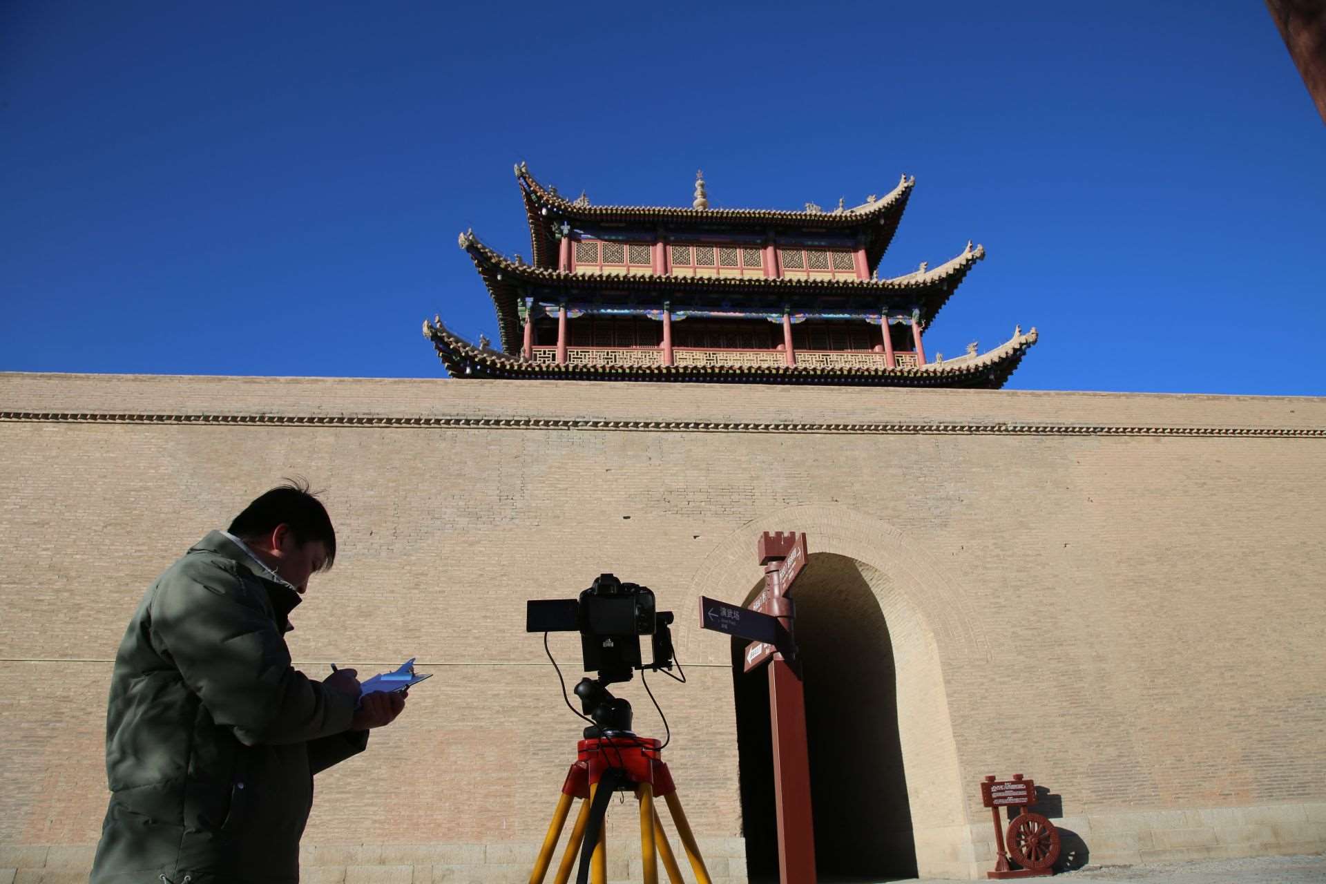 1月29日,嘉峪關(guān)絲路(長(zhǎng)城)文化研究院文化遺產(chǎn)監(jiān)測(cè)中心工作人員高商,正在對(duì)柔遠(yuǎn)樓城臺(tái)裂縫進(jìn)行定期監(jiān)測(cè)。戈壁上的風(fēng)很“硬氣”,高商寫字的手有點(diǎn)不聽使喚:“當(dāng)長(zhǎng)城醫(yī)生可不能偷懶,‘定期查體’都要做得仔仔細(xì)細(xì),這樣才能及時(shí)‘防病治病’。”同事在身后悄悄按下快門,高商渾然不覺。