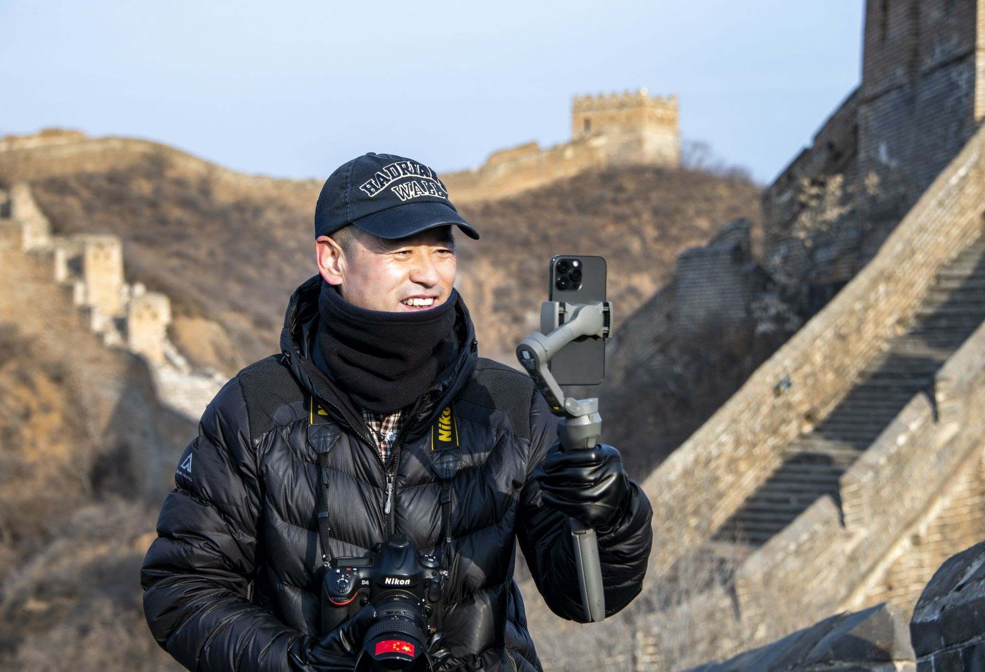 3月2日,“長(zhǎng)城老郭”登上長(zhǎng)城進(jìn)行直播。紀(jì)正權(quán)攝