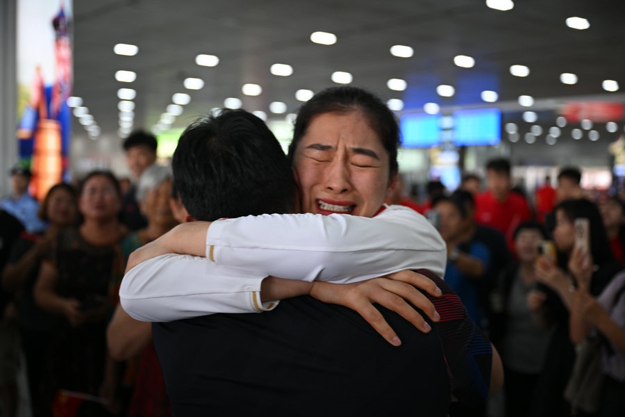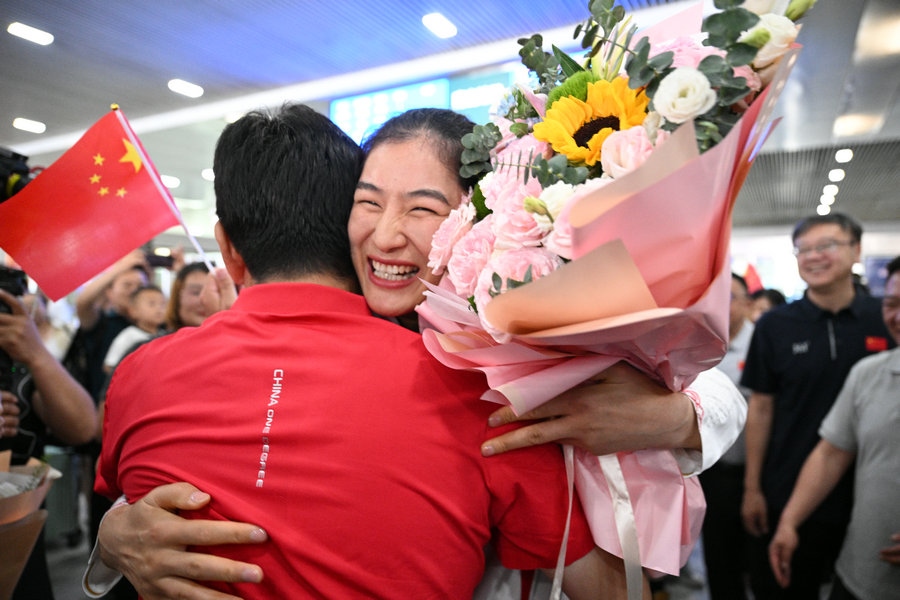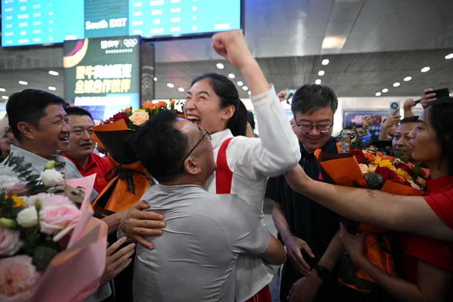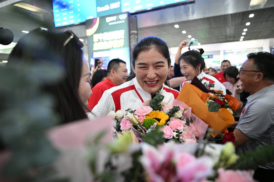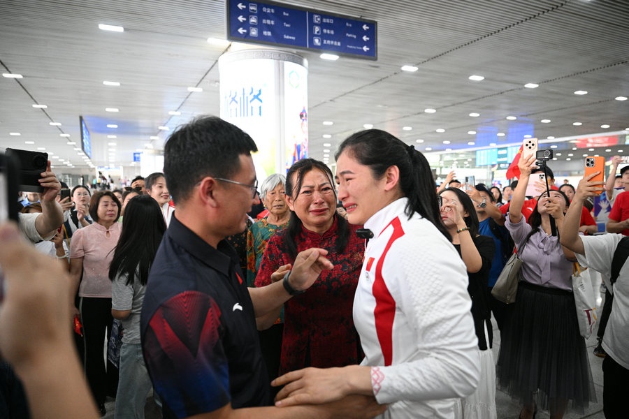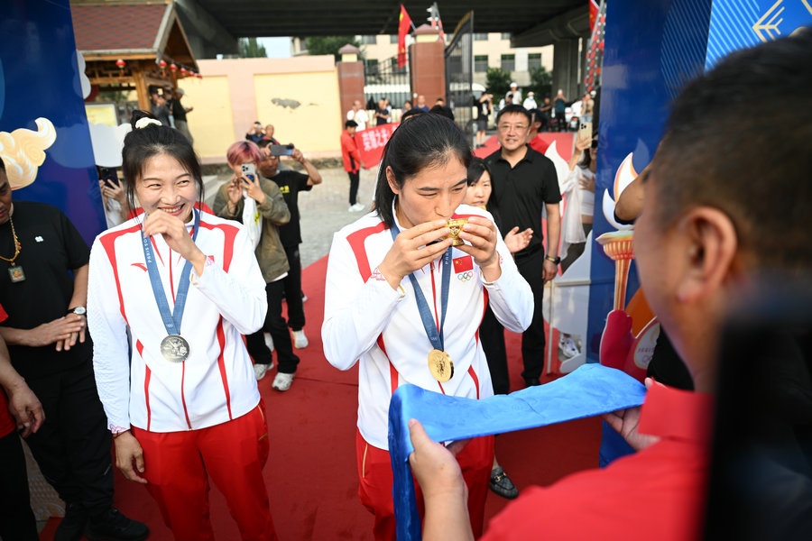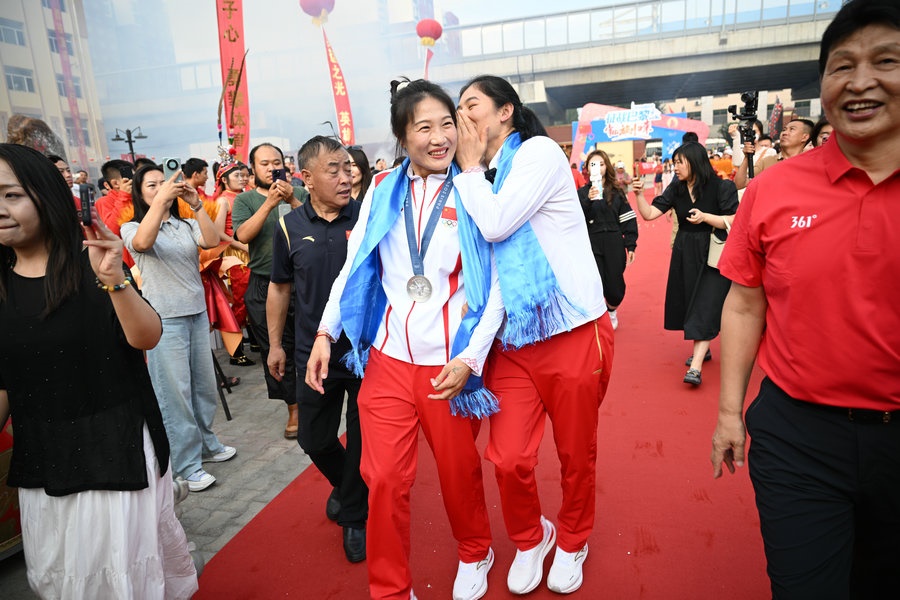 8月15日,征戰(zhàn)巴黎奧運會的內蒙古健兒李倩、楊柳乘坐高鐵,從北京回到呼和浩特。李倩在巴黎奧運會斬獲女子75公斤級金牌,楊柳摘得女子66公斤級銀牌。奧運健兒載譽歸來,身在家鄉(xiāng)的親朋好友、隊友教練為她們準備了盛大的歡迎儀式。(記者 李艷紅 李文華 林則志 石茹意)