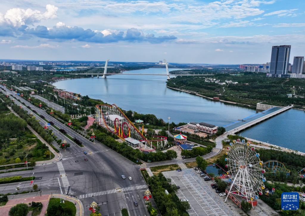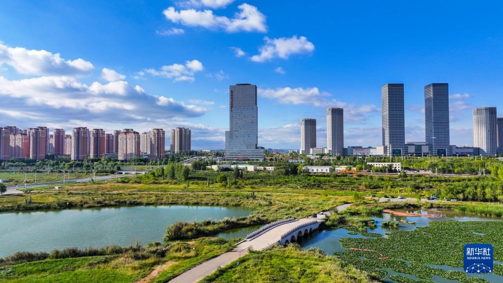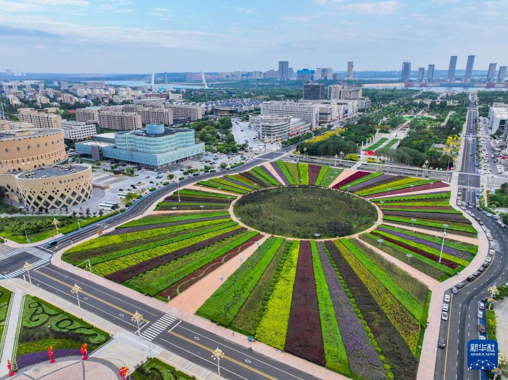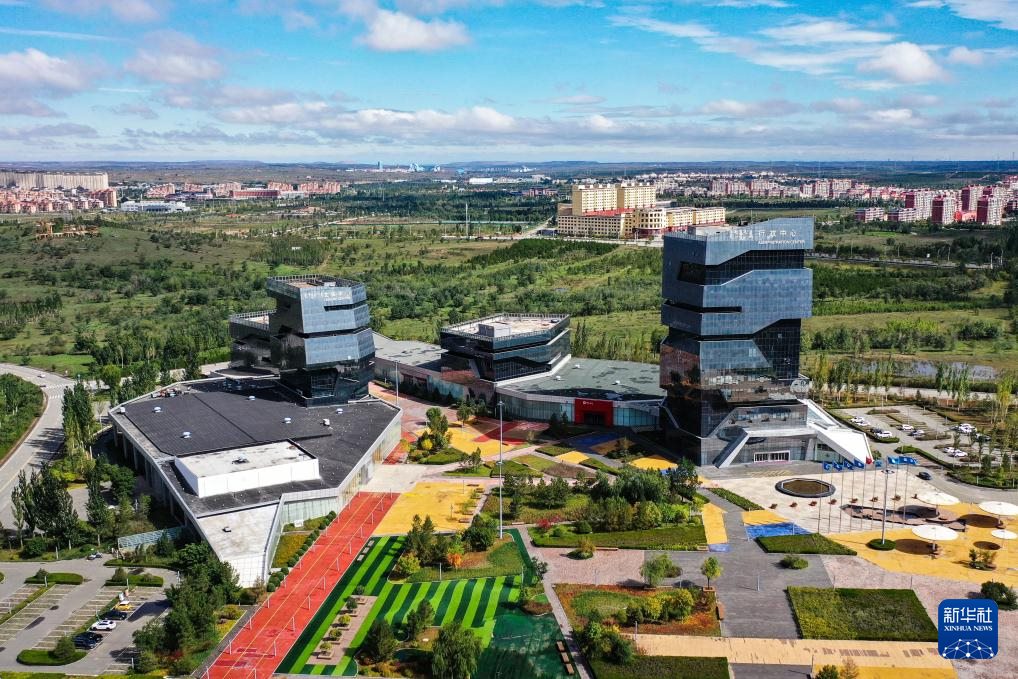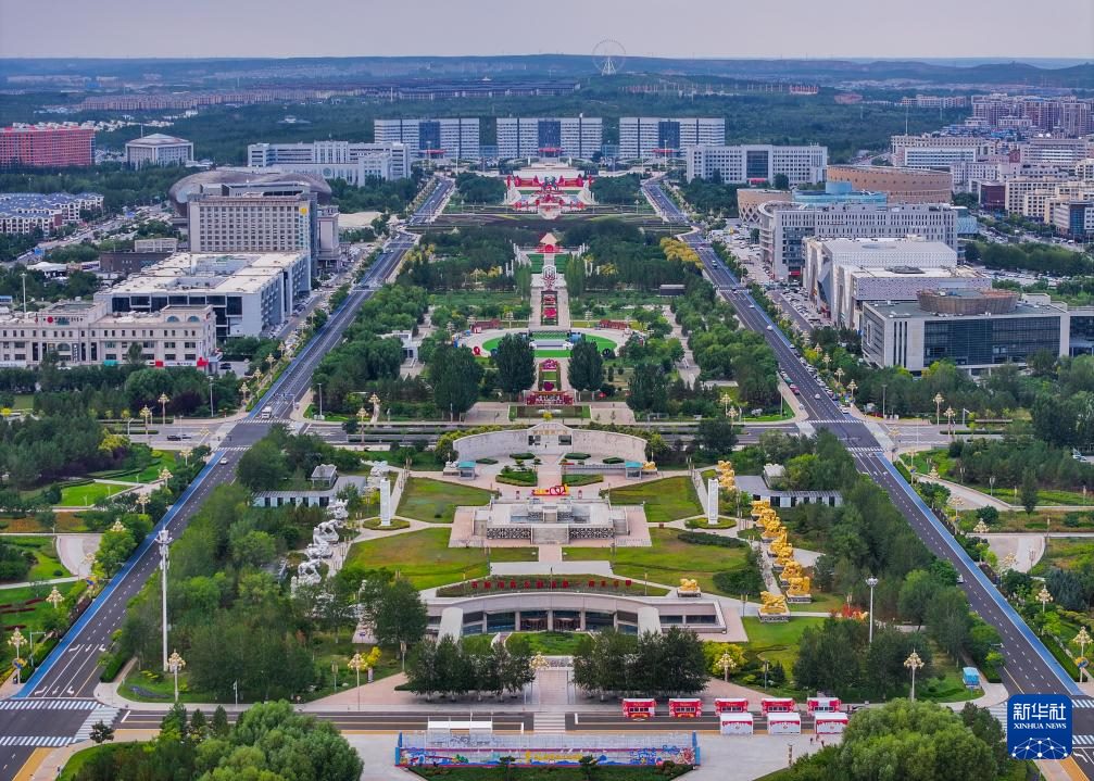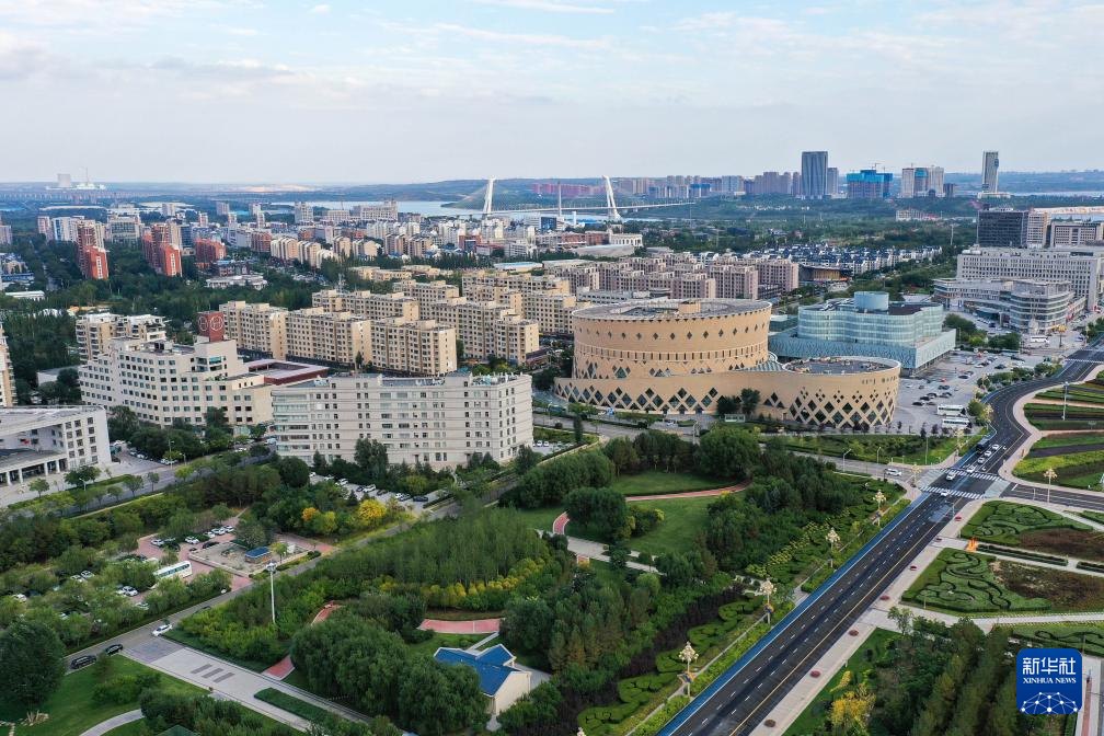 ???這是9月19日拍攝的鄂爾多斯市康巴什區(qū)中軸線(無人機照片)。