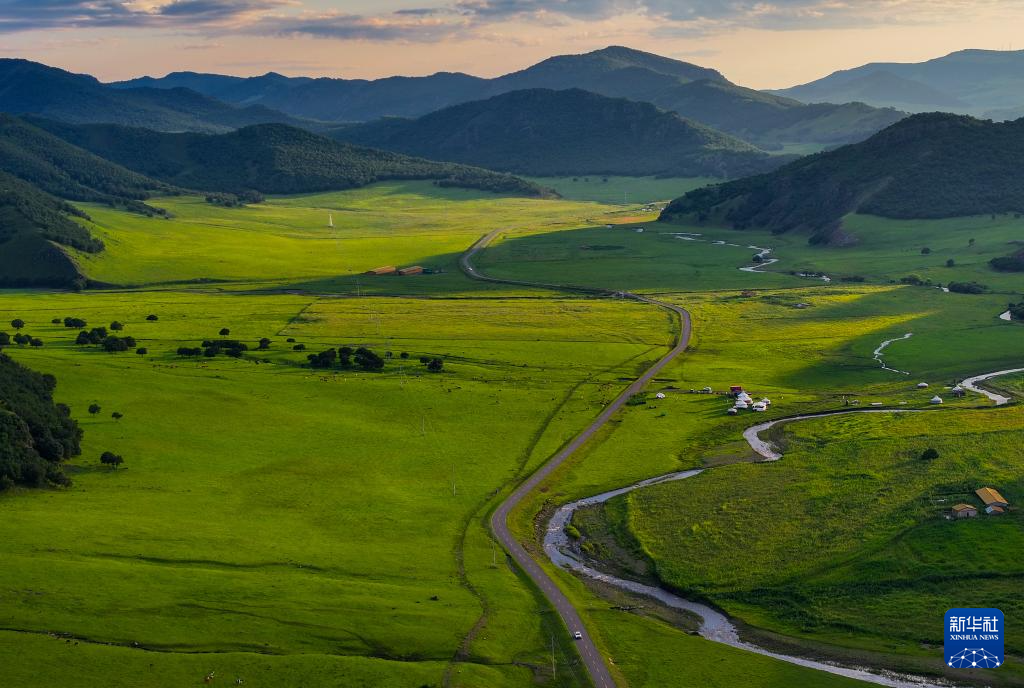 這是2024年8月8日拍攝的興安盟烏蘭毛都草原風(fēng)光(無(wú)人機(jī)照片)。新華社記者 連振 攝